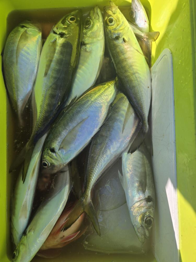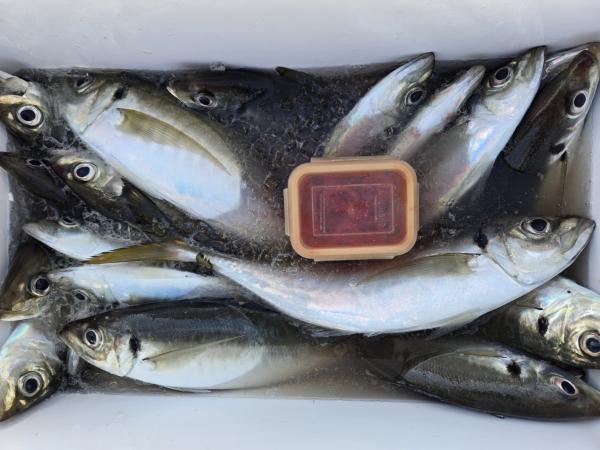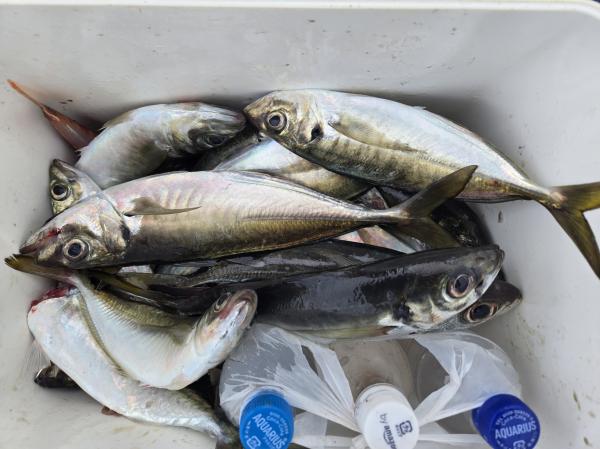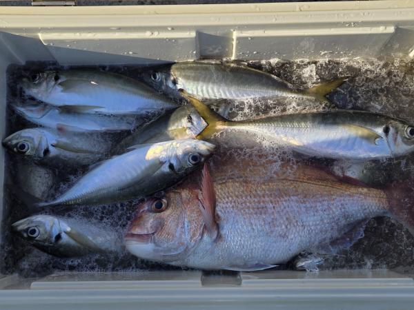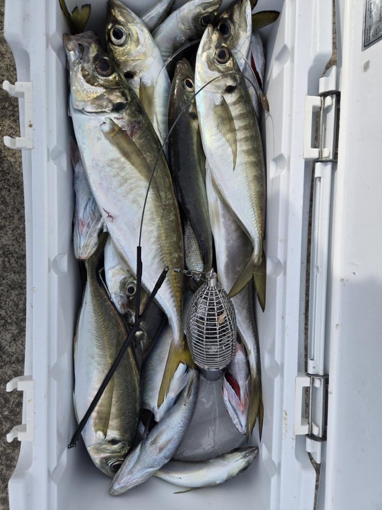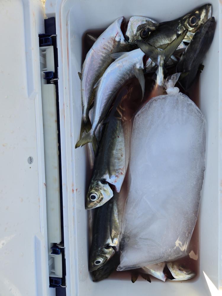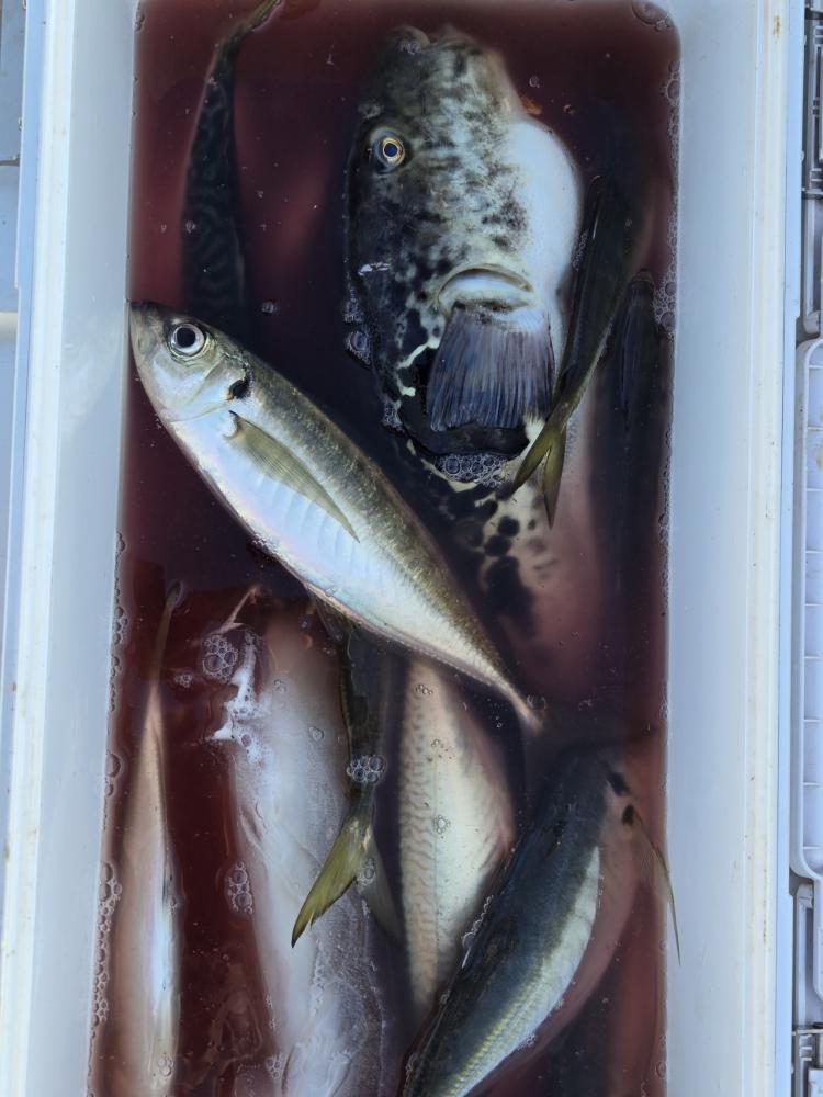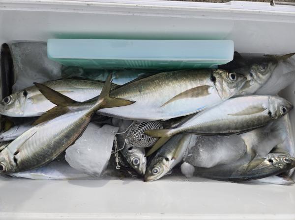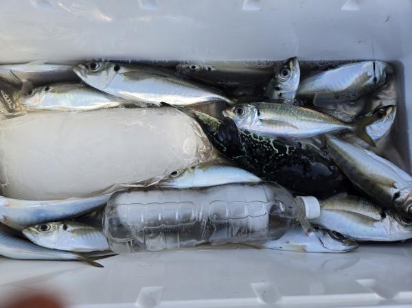 20~50匹良型揃いでクーラー重くなりました。外道にサバ、マダイ、トラフグ混じりました。