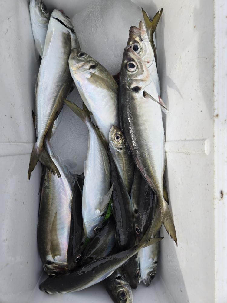 観音崎沖から出漁しました。一投目から顔出し、帰りまで場所移動無くポツポツ当たりました。中型主体で棚取り次第では良型も多数混じりました。アジ25~40cm 29~73匹。チビアジも数匹混じりましたがトップの方はチビアジは数に入っていません。