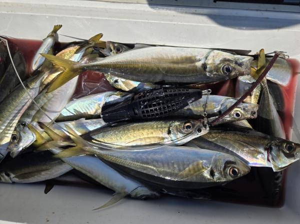本日も観音崎沖に出漁しました。良型揃いで1日ポツポツ当たり皆様クーラー重くなりました。アジ24~36cm 28~77匹。外道にマダイ、サバ。