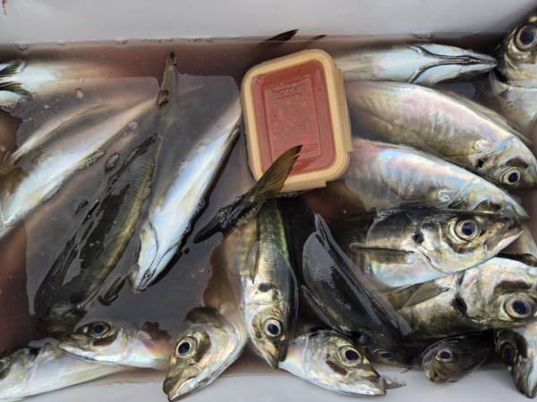 4月15日 アジ船本日も観音崎沖に出漁しました。潮の流れやや速く釣りづらい時間帯もありましたが、中型主体でポツポツ当たりました。アジ23~36cm 20~58匹。