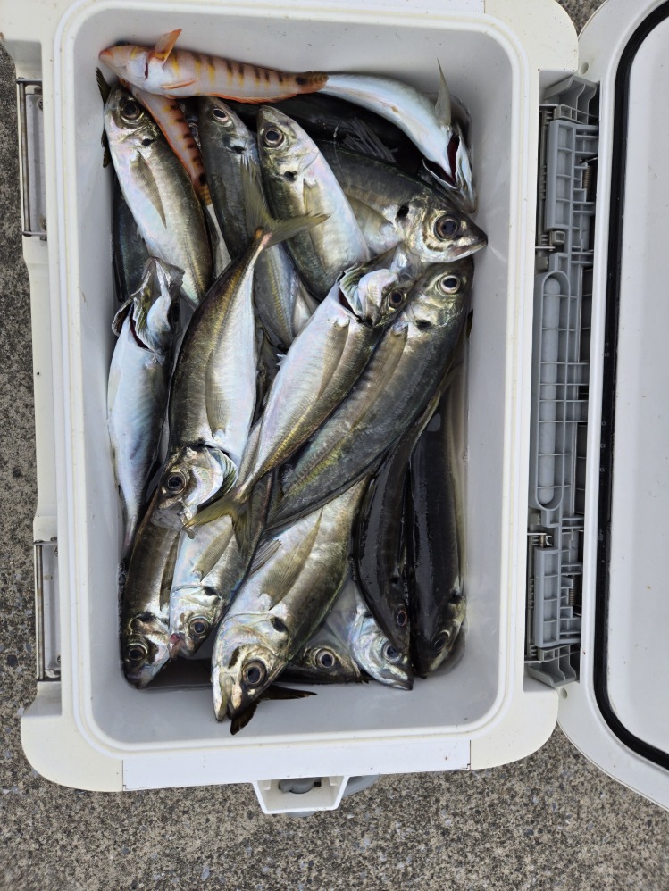 潮の流れ速く難しい釣りでした。淀み時間帯から上潮にかけ良型混じりでポツポツ当たりお土産確保できました。アジ23~36cm