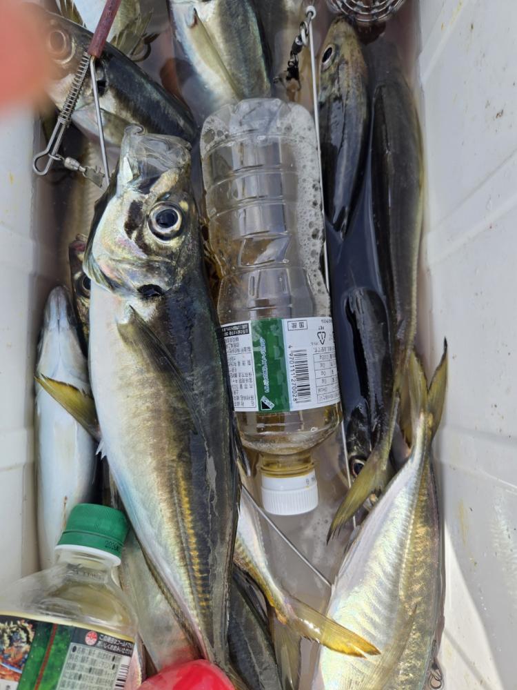 本日も潮の流れ速い観音崎沖に出漁しました。流れ速い中アジの活性は良く一投目から顔出し良型主体で1日ポツポツ当たりました。アジ24~38cm 29~70匹、次手69匹。外道サバ、チビアジが数匹混じりました。