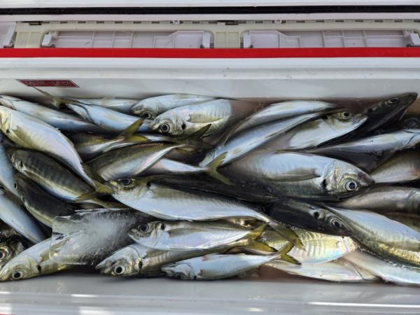 本日も魚の活性は良く1日ポツポツ当たり好調でした。お客様も満足して頂き早目の納竿となりました。アジ23~40cm 50~73匹。