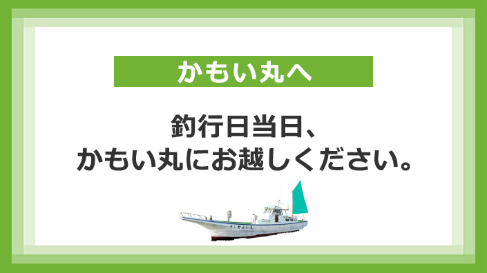 釣行日当日は、お時間に十分余裕を持って(出船時間の30分前までに)かもい丸乗船場までお越しください。