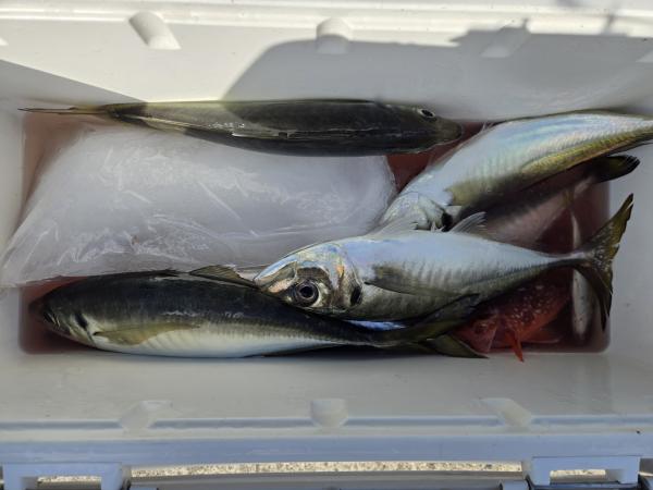 久々の出船となりました。久里浜沖に出漁しましたが水色澄み反応無く苦戦しました。大アジ、大サバ顔出し始めたものの南西の強風で早上がりとなりました。