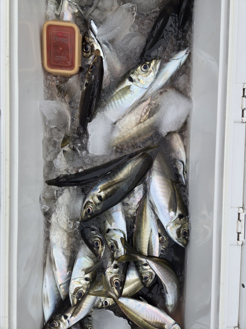 観音崎沖に出漁しました。本日は反応少なく魚の活性も悪く苦戦しましたが、魚は良型主体で数は伸びませんでしたが何とかお土産確保出来ました。アジ26~36cm 17~58匹。